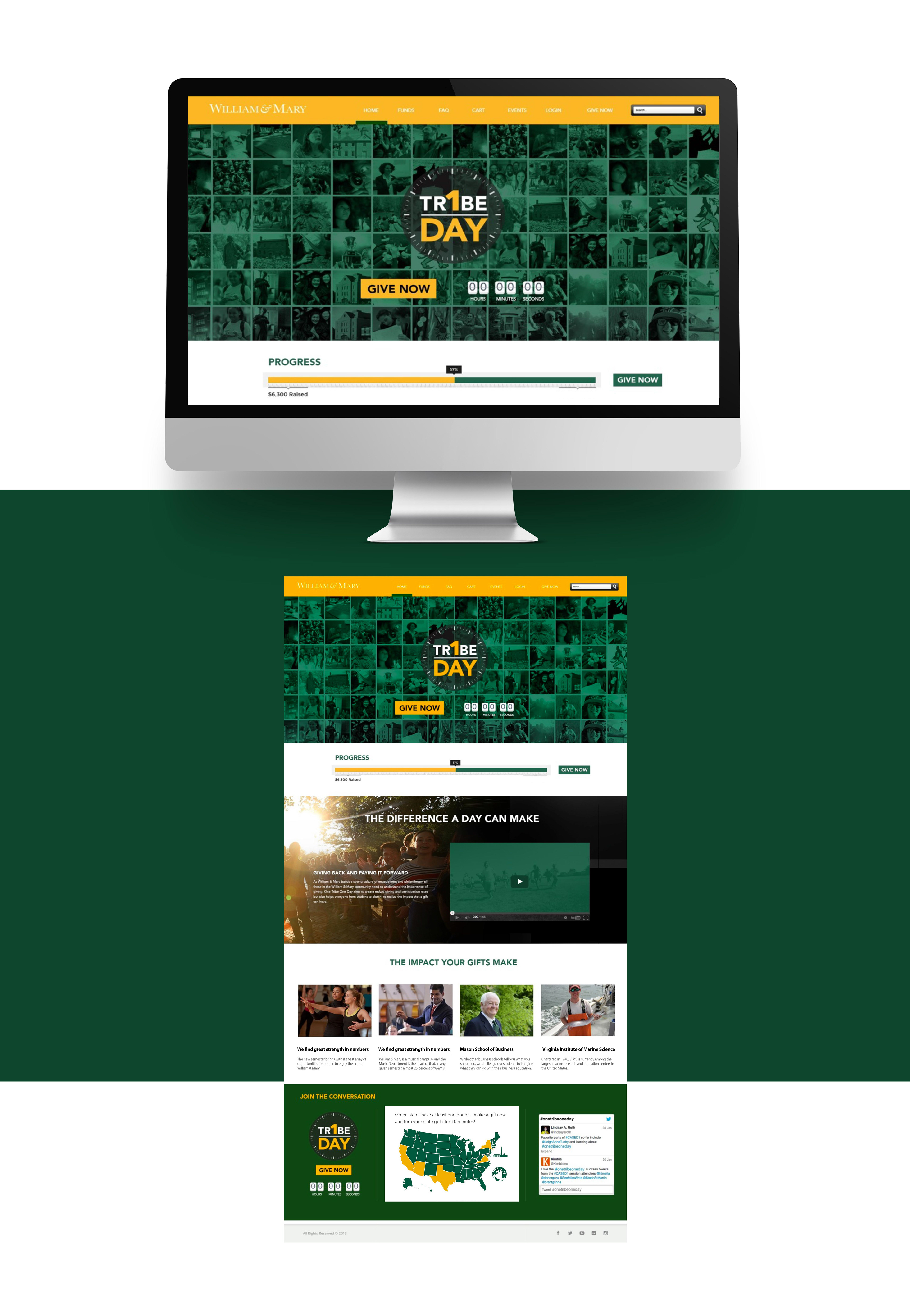 William & Mary’s inaugural One Tribe One Day philanthropy challenge was a record-breaking day for giving at the university. More students, alumni, parents, faculty, staff and friends made gifts to William & Mary than on any other single day in the university’s history. More than 1,700 people gave more than $150,000 during the 24-hour event that featured a carnival on campus for underclassmen, a Senior Class Gift Picnic and alumni parties in eight cities across the United States and London — all focused on the importance of private giving to William & Mary. One Tribe One Day shattered the university’s previous record of 523 donors in a single day.
